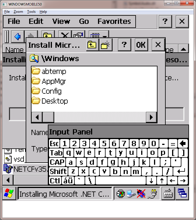...so,我再次将其复制到.exe所在的手持设备上的文件夹中(NETCFv35.Messages.EN.cab在重新安装后已被删除)。这一次,我确保将它安装到同一个文件夹中,而不是它第一次选择的看似随机的位置: