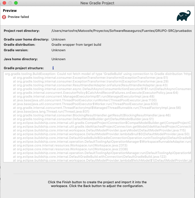 Could not fetch model of type 'EclipseProject' using Gradle distribution
