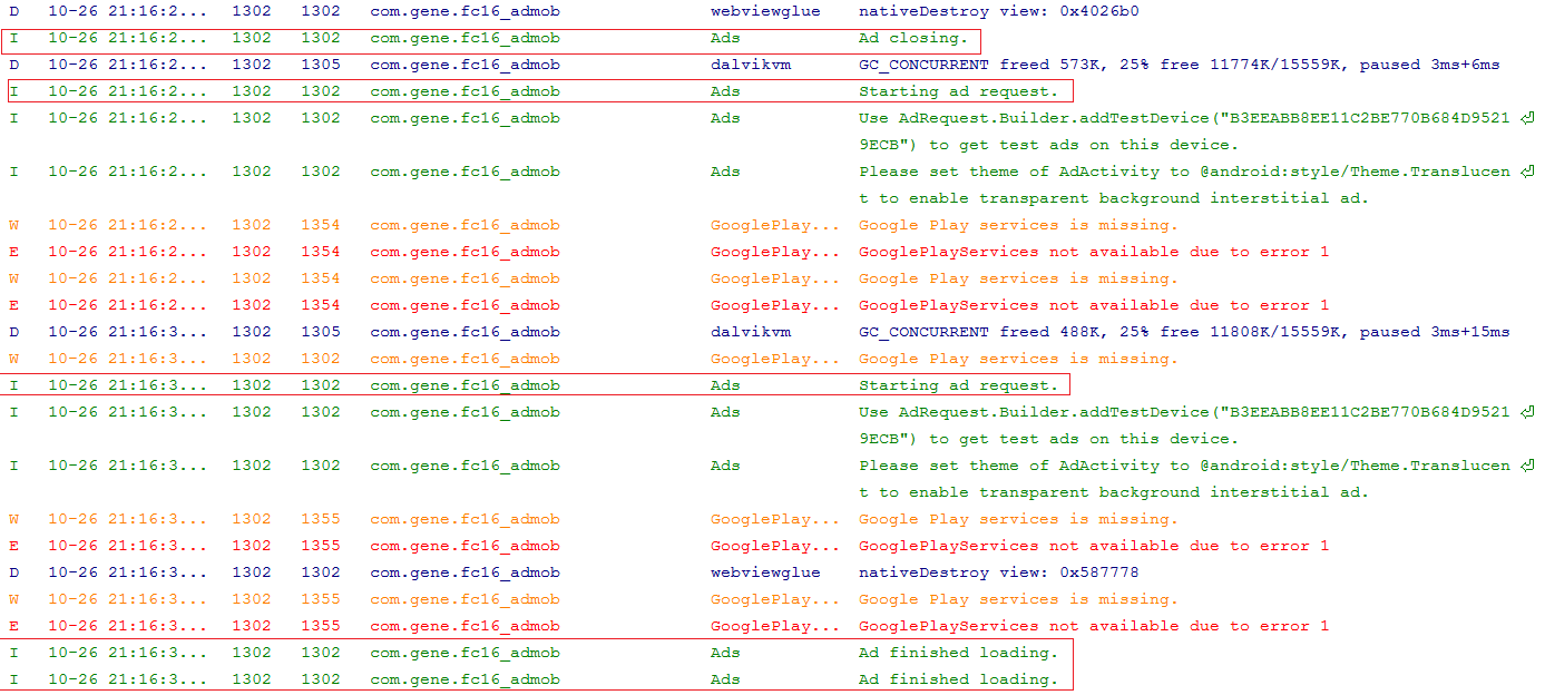 10-11 21:33:51.749 19409-19439/ W/Ads﹕ There was a problem getting an ad response. ErrorCode: 0