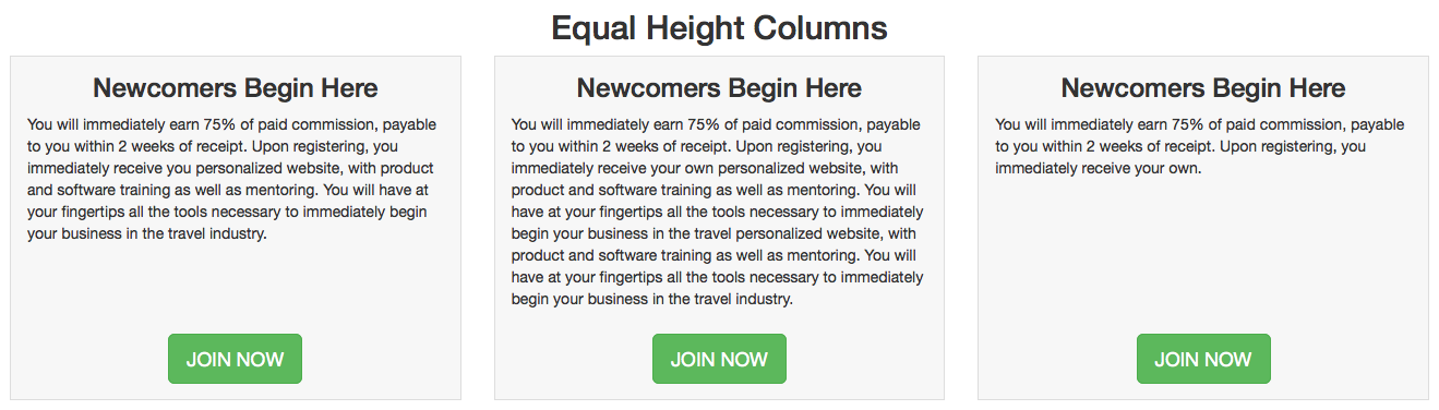 这里有一个例子,里面有一些假的内容和平底按钮。你会注意到等高是有反应的,它们是每一行视觉上的,所以它不是最高的,它是最近的兄弟姐妹中最高的。所以,本质上,它给出了预期的结果: