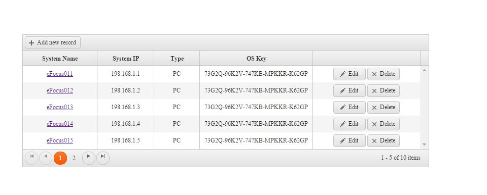 如果我单击第一列链接按钮eFocus011或其他行链接按钮意味着它将转到新的web,但是工具栏Add new record不起作用,因为我为System Name列字段使用了模板。如何获得正确的输出?我的代码: