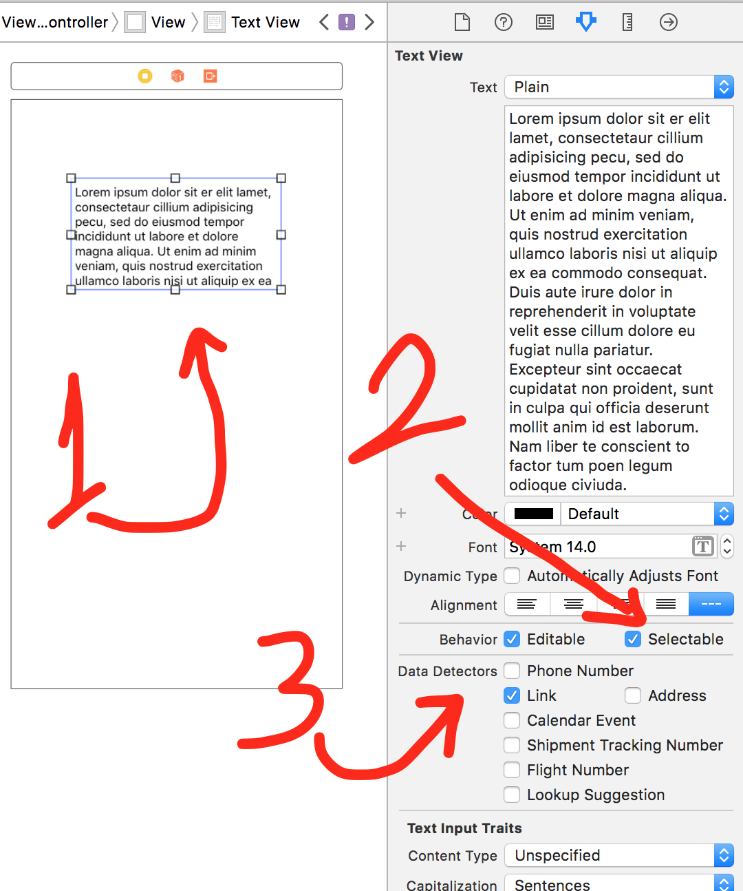 self.textView.attributedText = attributedString;当然,您可以将文本的一部分设置为链接。请阅读更多关于NSAttributedString 这里的内容。