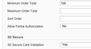 只需禁用最低订单即可。所以我们可以使用这种付款方式下所有的订单。并在您的代码中添加简单的逻辑,仅在订单大于$100或按您需要的情况下,才能通过VISA验证订单。喜欢,