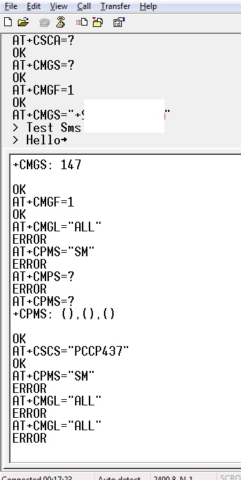 我试图使用AT命令在com6上用Nokia5530串口发送/读取短信