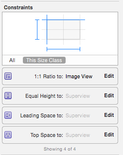 我想要图片保持它的比率,并完全填满细胞的宽度。我在UIImageView上设置了4个autolayout约束,水平约束为0-0,顶部/底部约束为5-5。我还将ViewMode设置为“方面匹配”。