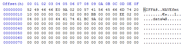 例如,下面是一个在十六进制编辑器中查看的示例WAV文件: