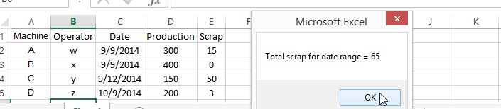 MsgBox ("Total scrap for date range = " & subTotal)