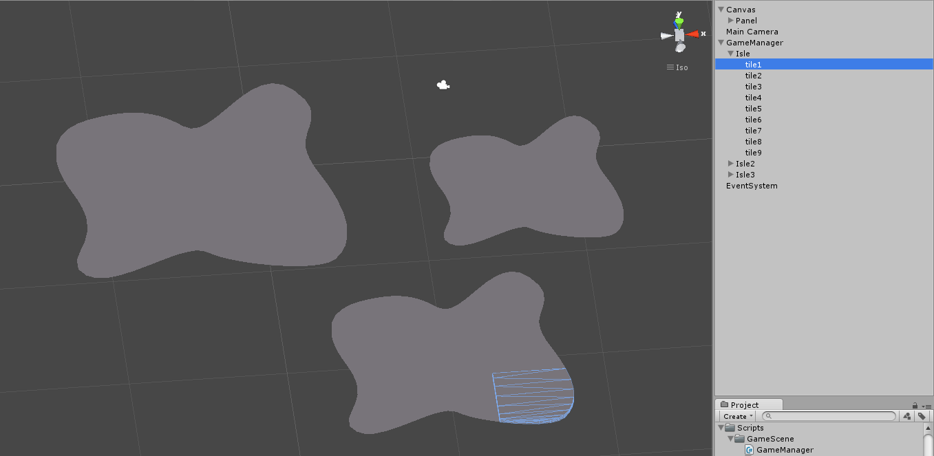 我遵循了本教程:http://games.ucla.edu/resource/unity-3-importing-assets-board-making/并创建了3个孤岛网格: