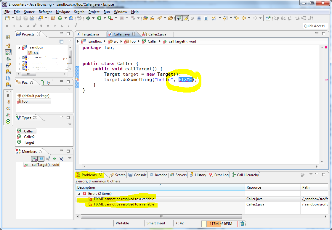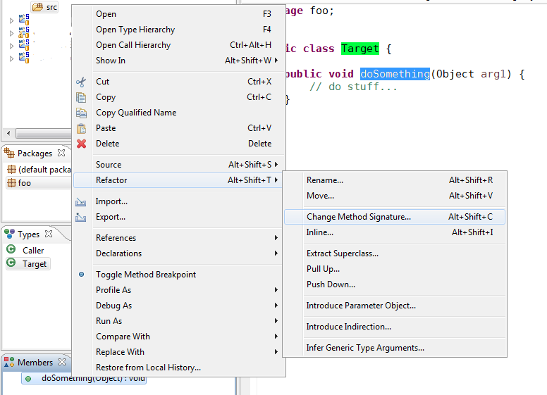 Eclipse的重构特性(大多数情况下)可以为您自动化这一点。右键单击要向其中添加参数的方法(在您的示例中,它将是methodCall()的源),并选择Refactor > Change method Signature.。