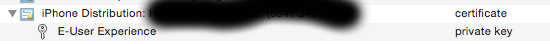 我从我的同事那里得到了p12文件并安装到我的mac中,我发现证书连同私钥一起正确地安装在我的keychain.And中,我也安装了配置配置文件。