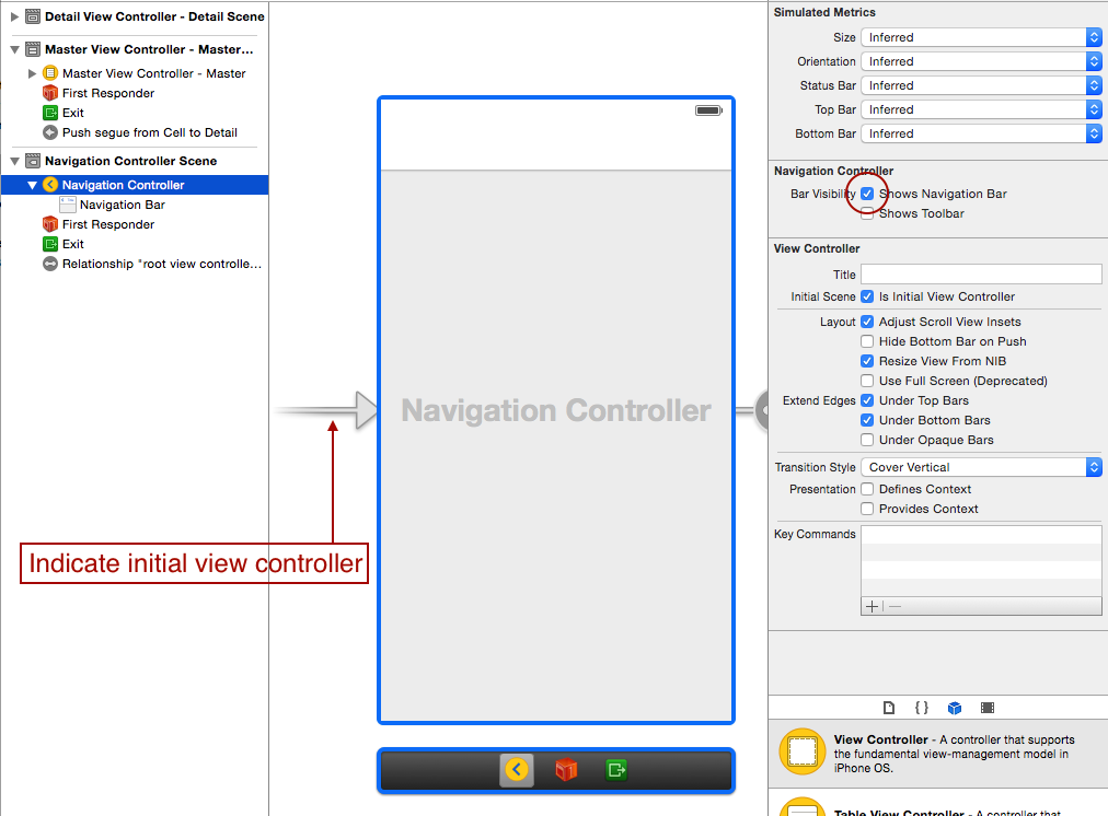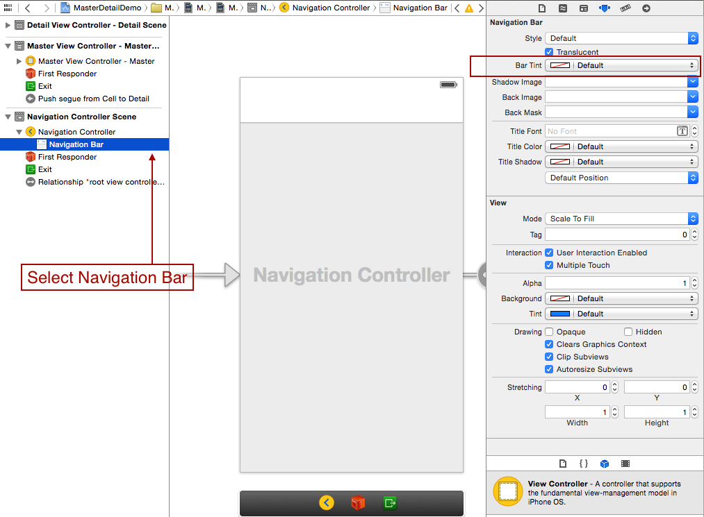 UINavigationController的条形色调,这是你的应用程序的起点。选择初始根视图控制器的导航控制器。