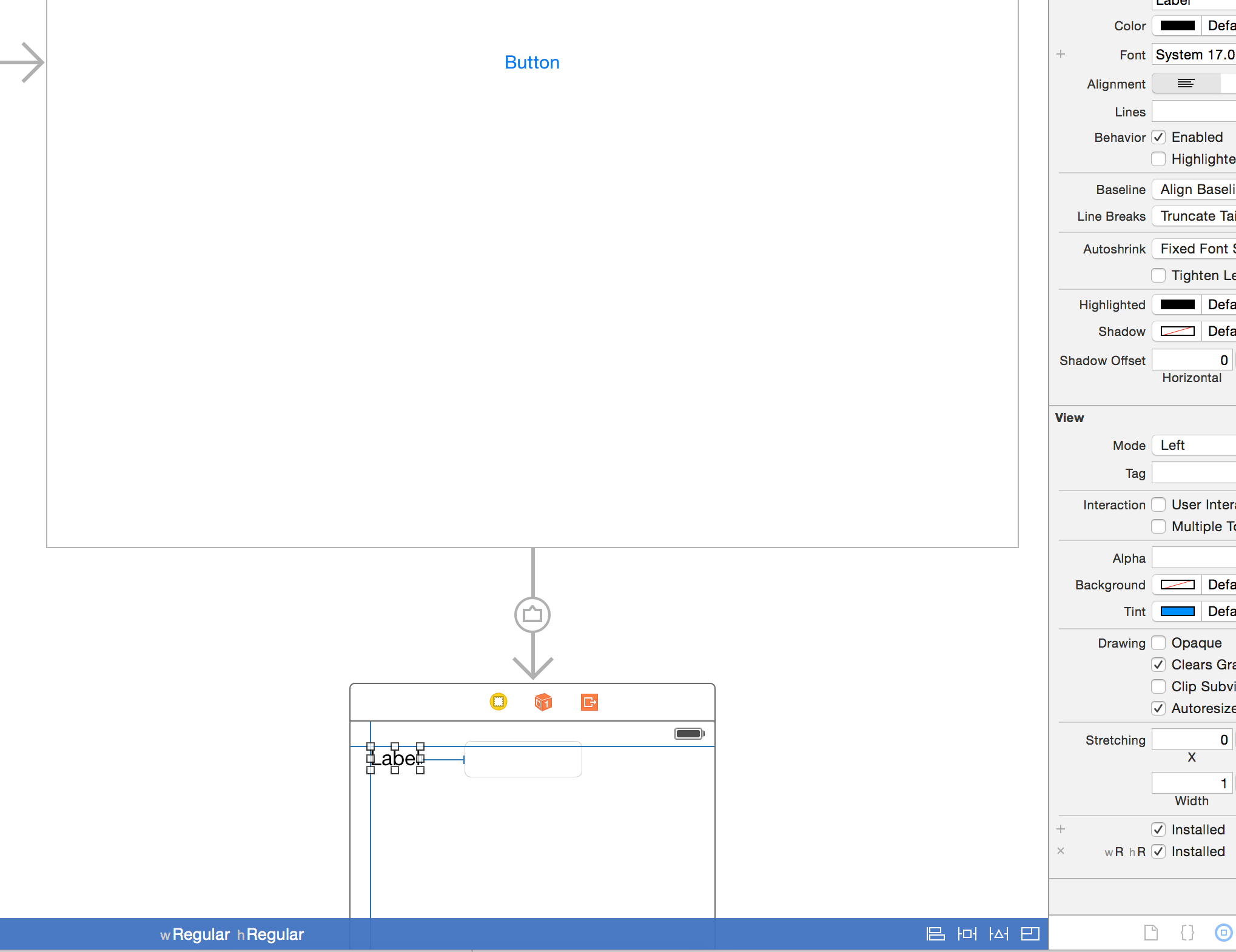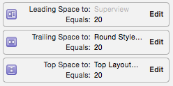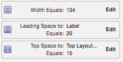 不需要宽度和高度,因为它们是根据标签文本(" label ")的内部内容大小自动设置的。重要:当您添加约束时,请确保它们是绝对的,而不是与保证金相关的(要理解差异,请阅读此博客文章iOS8布局边距)。