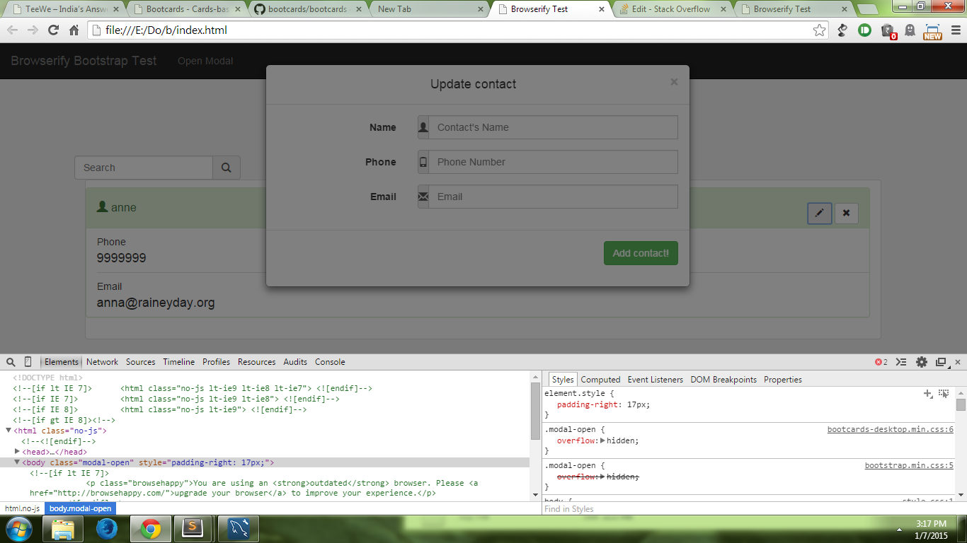 在您的Plunkr中,如果我将引导版本更改为v3.3.1并将bootcards-desktop.min.css更改为bootcards-desktop-lite.min.css,则所有这些都会再次工作。