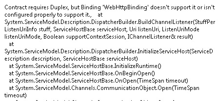 _host.Open();我不明白为什么它会说WebHttpBinding --我为这个服务使用的唯一端点--是我用我编写的代码创建的端点。