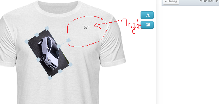 有网站printio.ru/classic_tees/new ( fabric.js库的创始人网站)..this是一个t恤打印website...upload任何图像点击图像选项,然后你可以定位该图像,在旋转的图像,旋转的数量也将被打印.提前感谢
