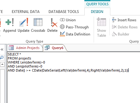 WHERE Date() >= DateSerial(Left(Nz(devTerm, "1990"),4),Right(Nz(devTerm, "01"),2), 1)