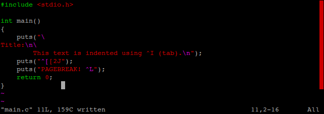 最后,我们有那些终端控制字节来控制光标和铃声。处理这些字节完全取决于终端,但是编写它们仍然是有效的C代码。
