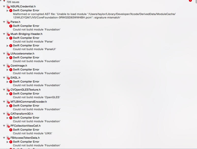 该应用程序构建,运行,并通过分析,没有任何问题。但是当我存档的时候,会弹出720个错误。有什么想法吗?到目前为止,我已经尝试了所有提到的东西。