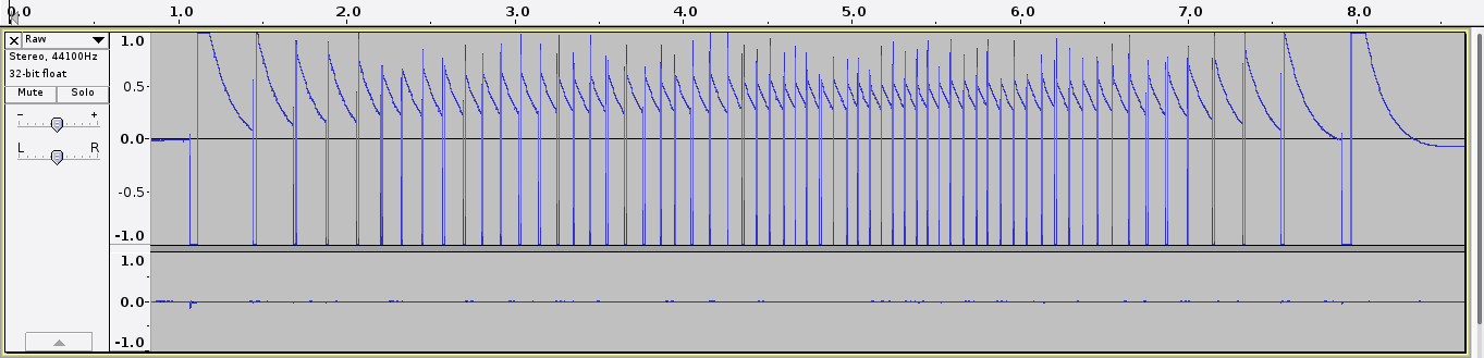 我的目标是实时测量跑步机的速度,这样我就可以把它作为输入输入到我的游戏引擎中,并控制游戏中角色的速度。我不知道做这件事的最佳方法是什么,但目前我正试图使用PyAudio测量python中的“拍”之间的距离。
