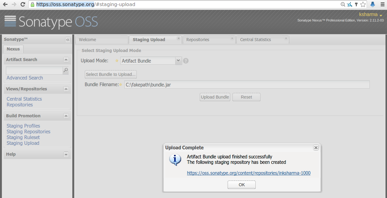 jar -cvf bundle.jar log4j-weblayout-0.0.1-BETA*转到声呐型尼克斯并使用您的凭据登录。转到分期、上传和上传您的包。