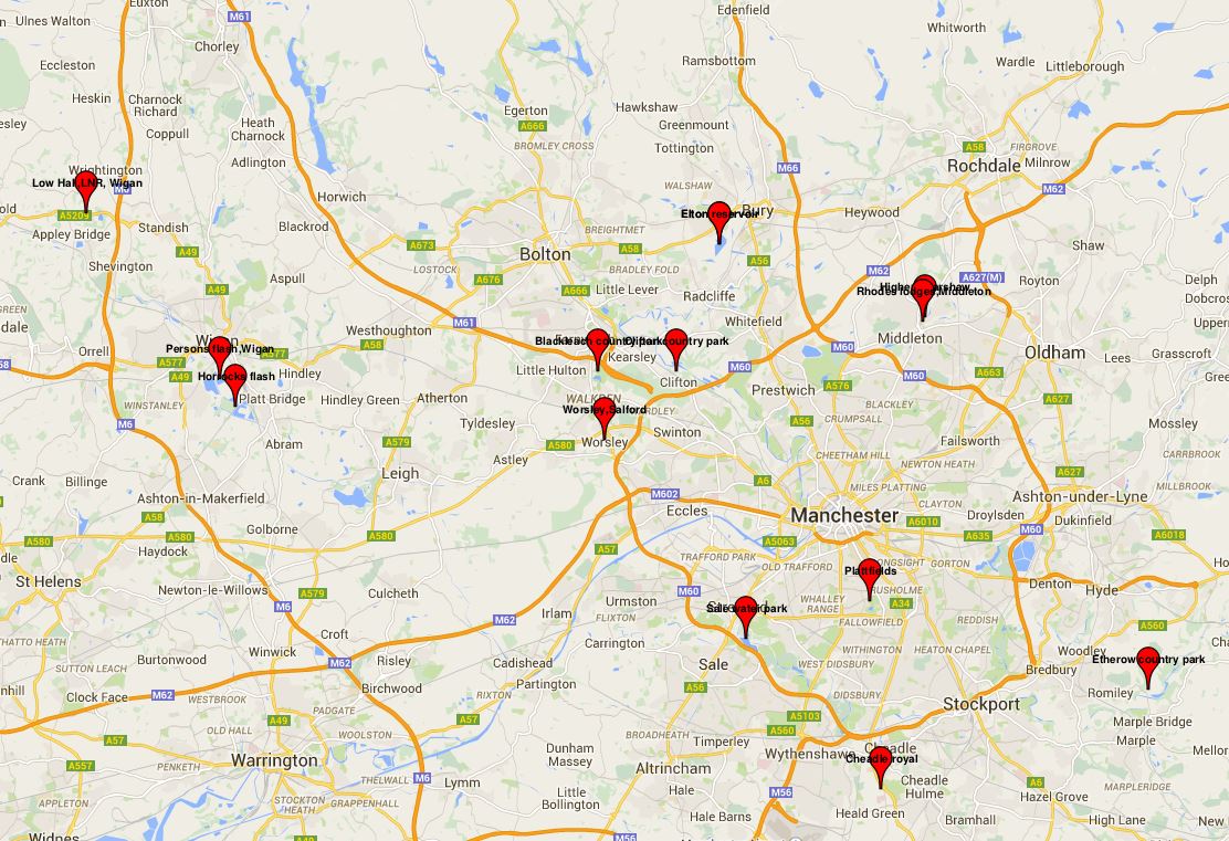 origin<-c("Worsley,Salford","Elton reservoir","Etherow country park","Blackleach country park","Low Hall,LNR, Wigan","Cheadle royal","Rhodes lodges,Middleton","Persons flash,Wigan","Sale water park","Plattfields","Higher Boarshaw","Clifton country park","Horrocks flash")