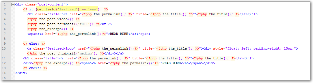 我们可以根据需要在if块中创建/样式元素,在其他块中为post的其余部分设置样式。