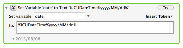 该工具支持正则表达式,因此使用正则表达式,我需要将这个值转换为[yyyy/MM/dd]格式的格式化字符串;在本例中,2015/03/31。