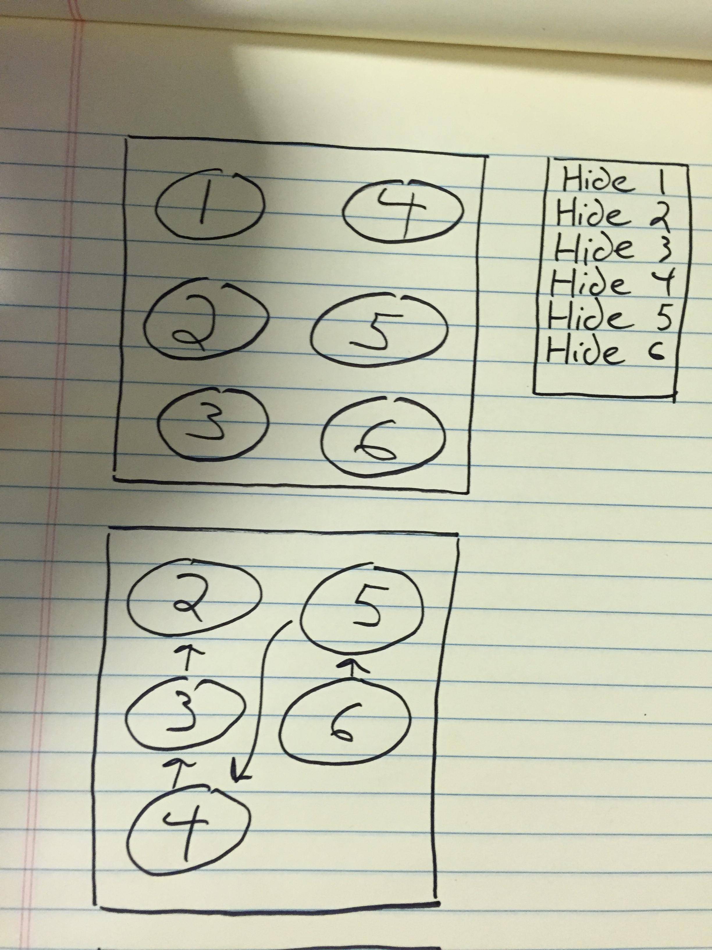 我有一个相当困难的问题,我被困在上面,我希望能有一些洞察力,如果这是可能的CSS。我有6个div,1-3需要在左列,4-6在右列。单击任何div时,它们都会使用jquery ()进行隐藏。我发现困难的部分是当您移除一个div时,我需要它们以一种特定的方式重新排序。请参阅所附的订购/再订购的图片。看看我的小提琴,看看我的进步,谢谢你的帮助。