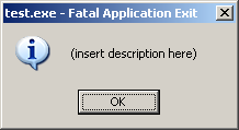 调用FatalAppExit()会生成一个MessageBox和事件日志条目,但没有Dr Watson: