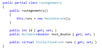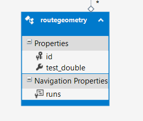 可能的解决方案是编辑自动生成的类以添加DBGeometry属性,但是每次更新模型时,这些属性都会消失。