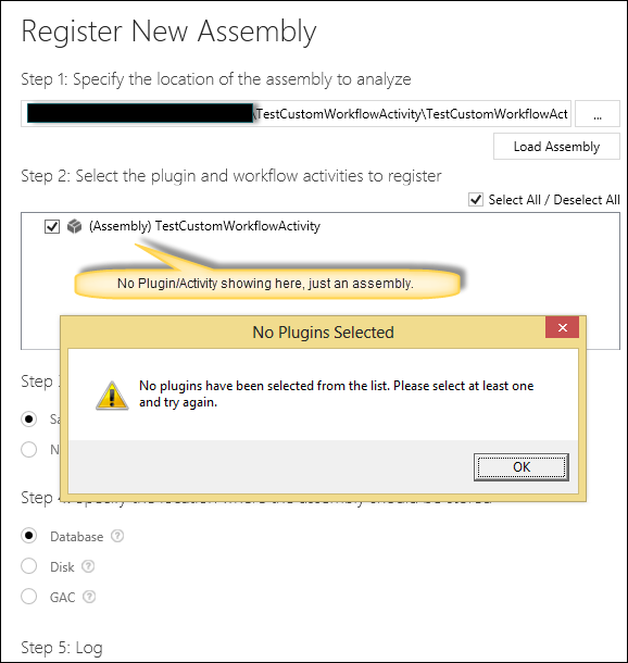 我使用这个示例创建自定义工作流活动创建了一个自定义工作流活动。但在插件注册工具中,这并不是一个插件/活动类型。见下图:
