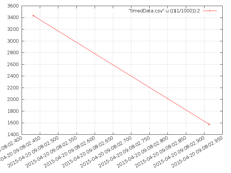 plot "timedData.csv" u (($1/1000)):2 with linespointshttps://stackoverflow.com/questions/29840980