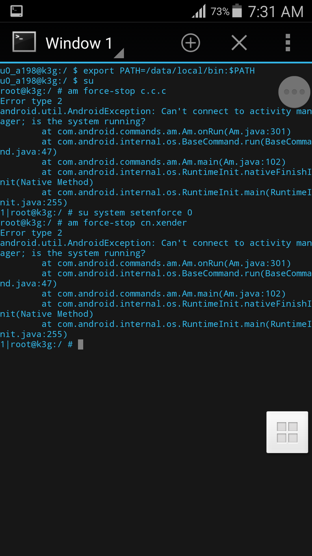 错误类型2 Android.util.AndroidException :无法连接到活动管理器;系统正在运行吗?