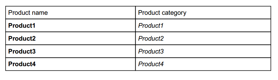 table_data << ["Product name", "Product category"]