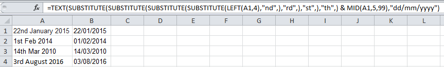 =TEXT(SUBSTITUTE(SUBSTITUTE(SUBSTITUTE(SUBSTITUTE(LEFT(A1,4),"nd",),"rd",),"st",),"th",)