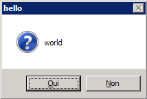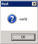 Win32::MsgBox('world', MB_ICONQUESTION(4, 'hello'));