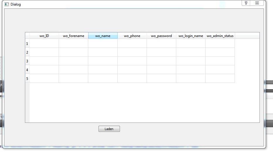 我的表在我的程序中是空的,但是它有正确的列数量,如果我在我的sql工作台中添加更多的列,它将得到更多的行,但它们中没有显示任何列。这是我的源代码: