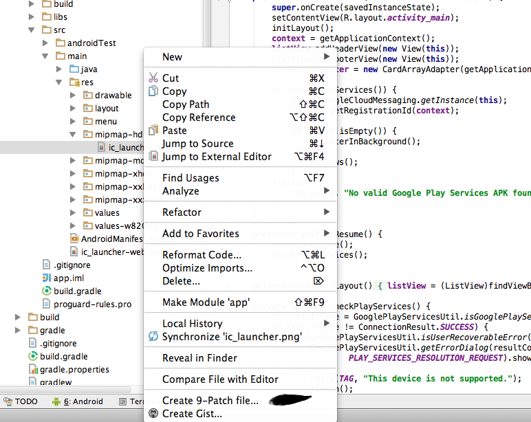 或者,在Android中,您可以右击可绘图的图像文件并创建9个修补程序映像。然后你就可以编辑文件了。