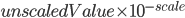 如果为负数,则该数字的无标度值乘以10乘以该标度的负数的幂。