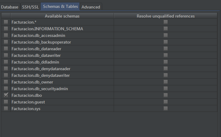 我有一个使用内置IntelliJ工具连接到的数据库,它正确地连接到测试数据库并显示它,但是它不使用其他数据库显示表。然后,我尝试用相同的信息连接开放源码工具source,它可以正确地连接到数据库并显示表。