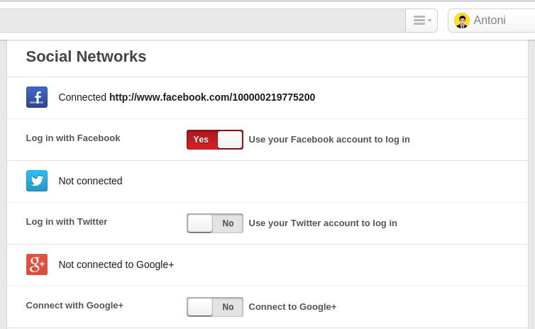 因此,用户可以设置,连接和断开他们的社交媒体与我们的网站。