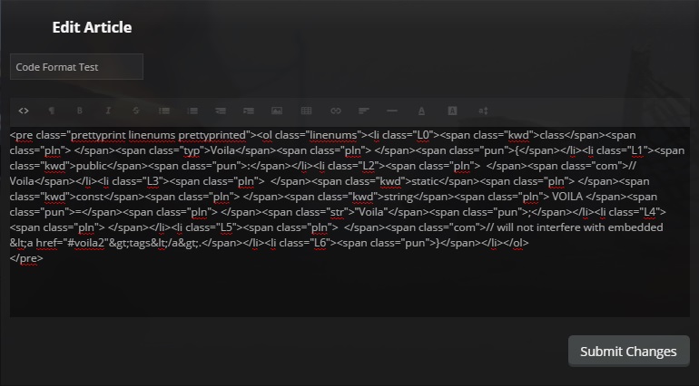 这方面的问题是,当您回来编辑文章时,它会在内容中应用美化样式,然后样式显示为纯文本(作为代码片段内容的一部分)。