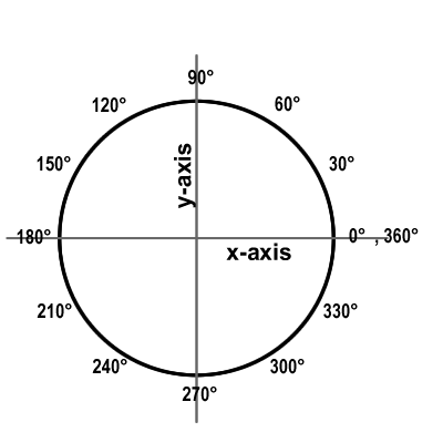 为了从一个角度创建一个向量,我们只对x和y值使用cos和sin。