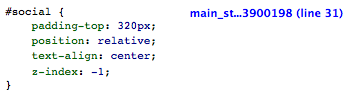 在css文件中为#social添加一个负的z-索引将解决您当前的问题,但是看起来您可能仍然需要在移动版本的导航上工作。