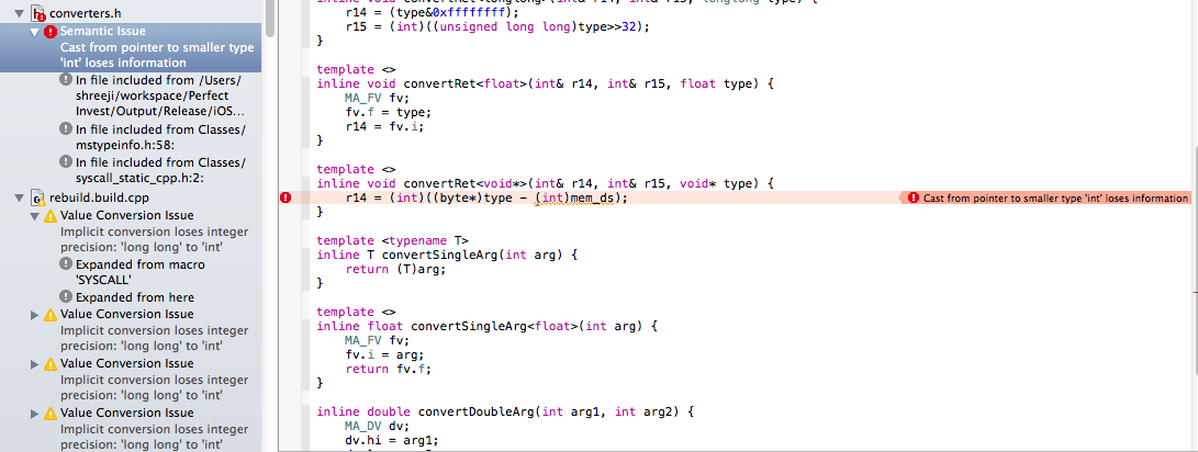 我已经开发了iOS应用程序。它在32位设备上运行良好,但App需要支持64位强制。所以我在架构中增加了arm64,我得到了引用错误的类型。