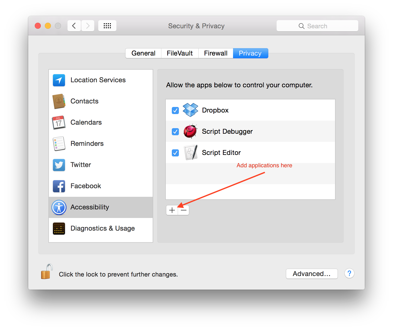 我发现,除了osascript本身之外,有时我还需要添加调用osascript的进程的父进程,而不管错误消息是什么。有时我还得加上祖父母的程序。