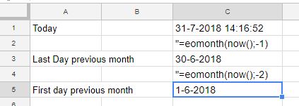 如何获得前一个月的第一天和最后一天的谷歌单张?