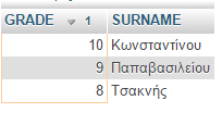 SELECT GRADE as GRADE, SURNAME FROM pinakas2