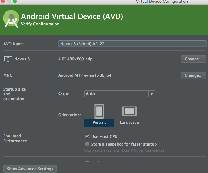 我正试图在模拟器上调试一个MNC预览,在我下载SDK:MNC和image之后,设置AVD如下: