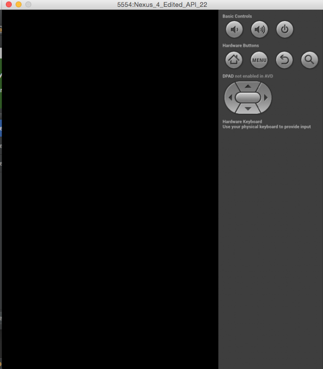 并选择一个小分辨率: 480x800 hdpi以节省内存。但我有一个空白屏幕的AVD,似乎没有启动。我还尝试了Intel x86_64 img(HAXM),但也没有工作,空白屏幕: